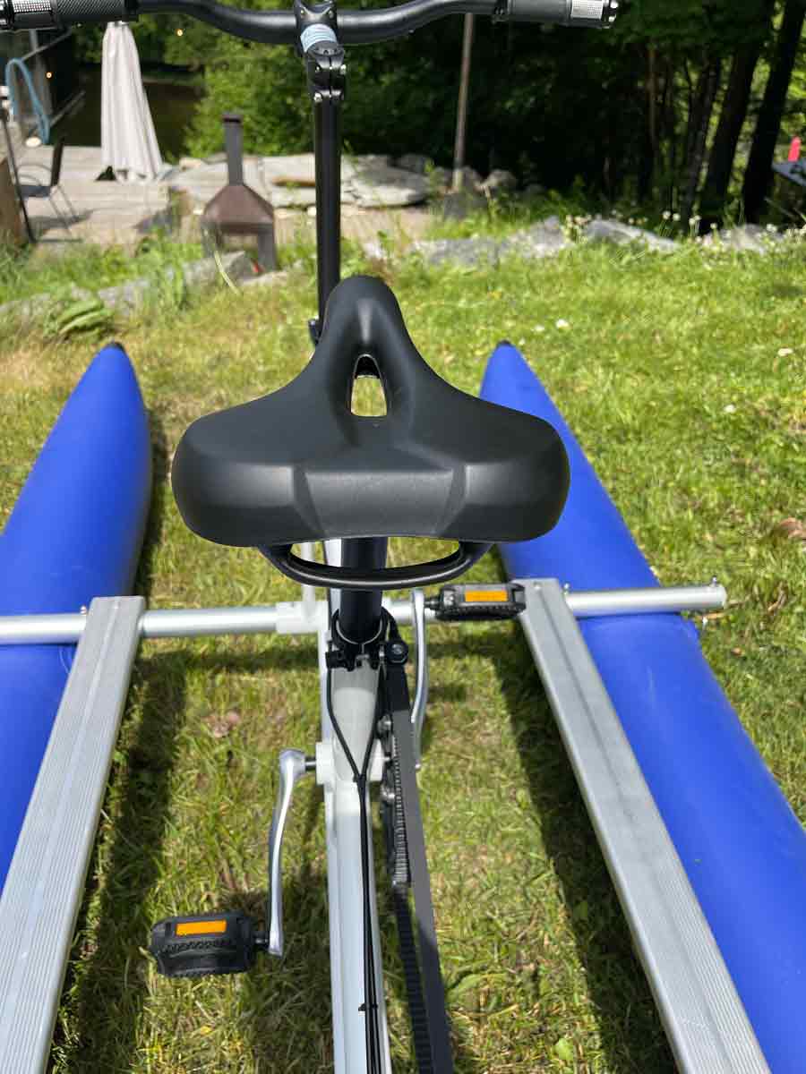 The Water Bike on floats is distinguished by its premium quality 606 aluminum frame for maximum durability. The soft and comfortable saddle provides a smooth and pleasant ride. All parts are carefully selected to provide an optimal experience.