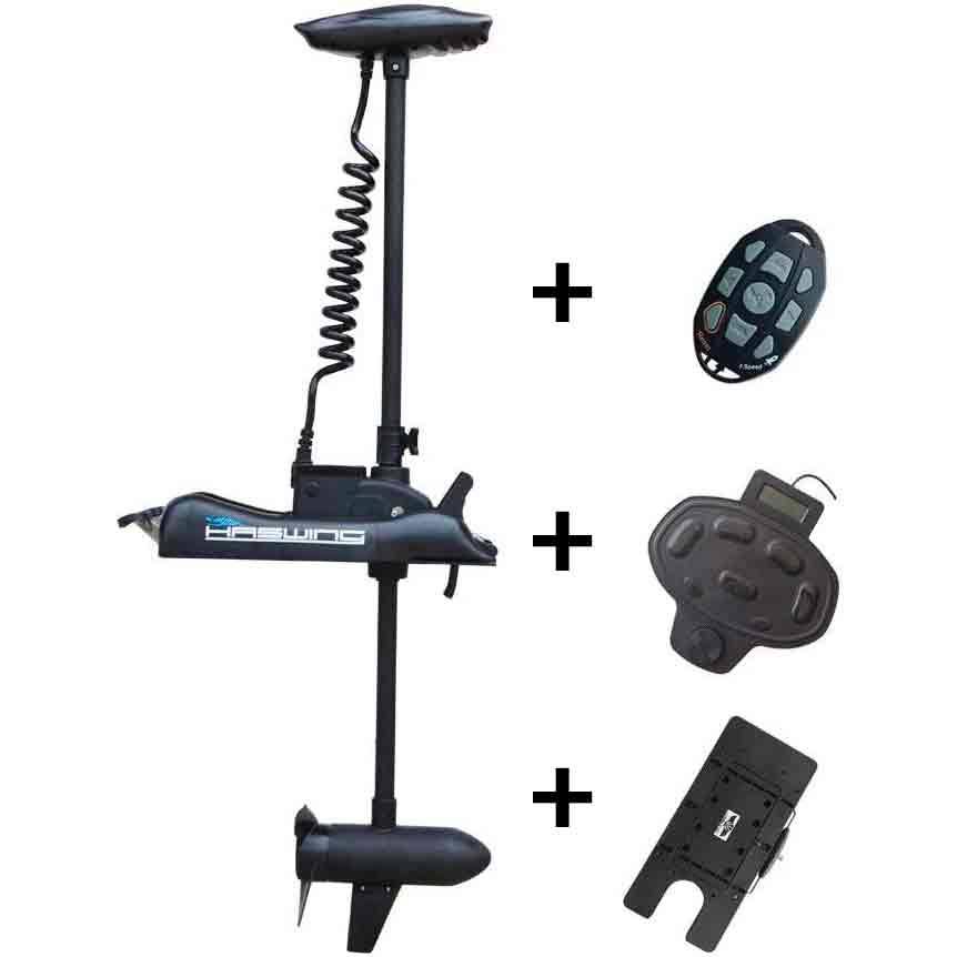 Le modèle Haswing Cayman-B 55 lb se monte à l’avant du bateau et est équipé d’une commande à distance ainsi qu'une pédale pour commande au pied + une hélice de rechange. Ce moteur est ainsi d’une maniabilité parfaite où que vous soyez sur votre bateau. Son moteur puissant de 55lbs de poussée en 12 volts permet d’évoluer sereinement dans toutes les eaux et grâce à son système d’inclinaison, le moteur est sorti de l’eau en un tour de main. Les voyants de son indicateur de charge de batterie vous permettent de contrôler votre autonomie d’un simple coup d’œil. Utilisation en eau douce et eau de mer. Nous incluons le système d'installation rapide qui vous permet d'installer et de désinstaller rapidement le moteur pour vous éviter de l'endommager pendant le transport ou pour l'installer sur plusieurs bateaux.