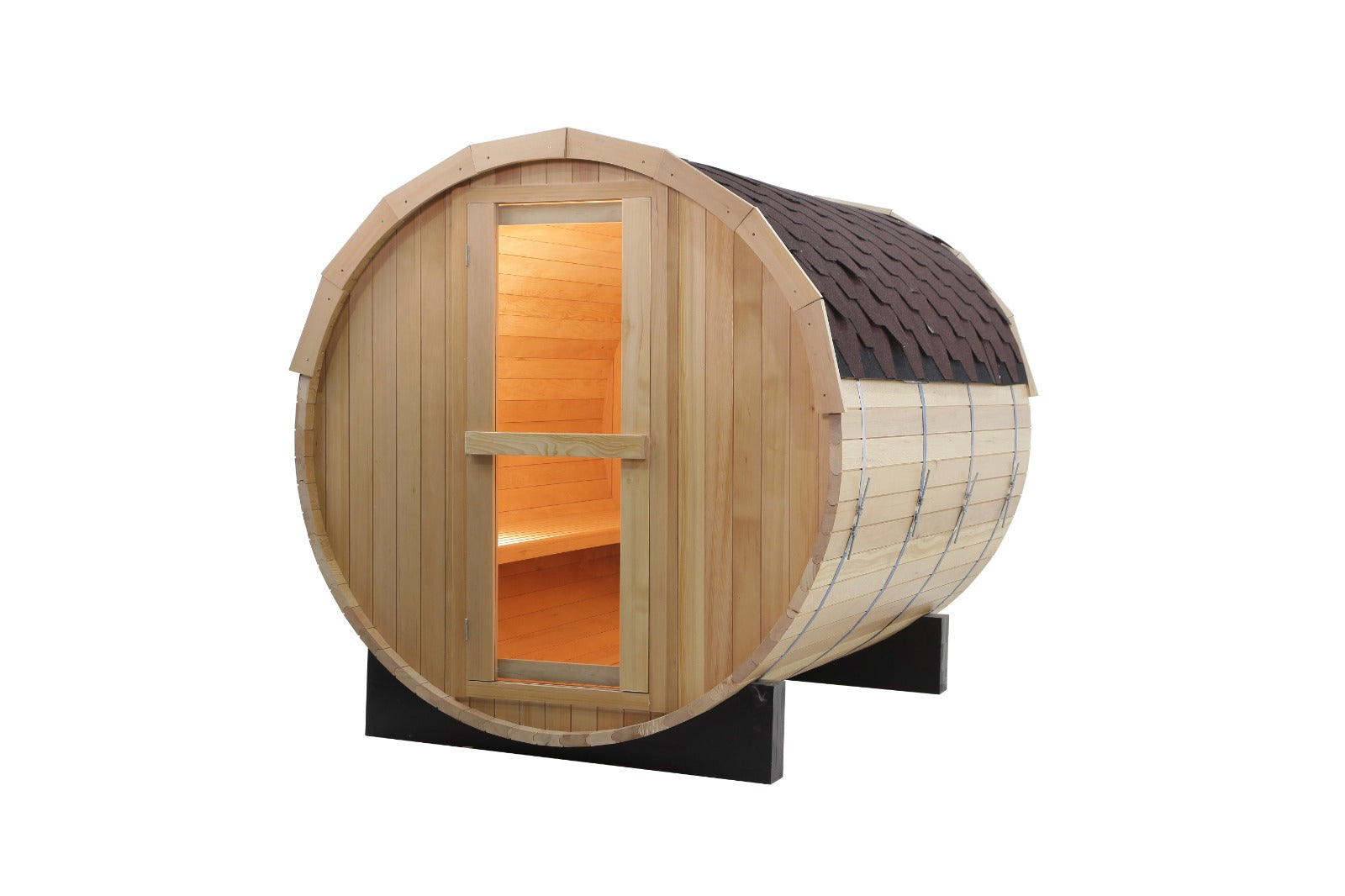 Ce sauna en forme de baril est FULL équipé d'un chauffage électrique Harvia de 6kw directement de Finland pour vous offrir une expérience de sauna efficace, puissante et de haute qualité.